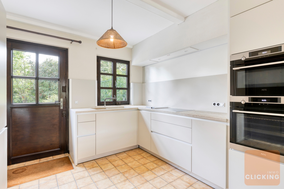 Cette maison bien entretenue combine le charme campagnard avec le confort de vie moderne. Dès l'entrée, vous ressentez une atmosphère chaleureuse et accueillante. Le séjour lumineux avec cheminée constitue le cœur de la maison et offre une vue sur le jardin. La cuisine Bulthaup récemment rénovée est entièrement équipée, idéale pour ceux qui aiment cuisiner et recevoir.