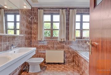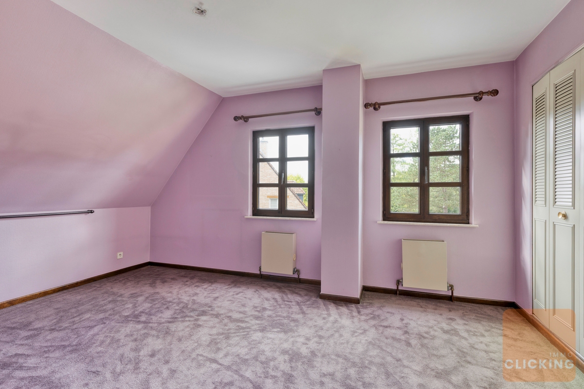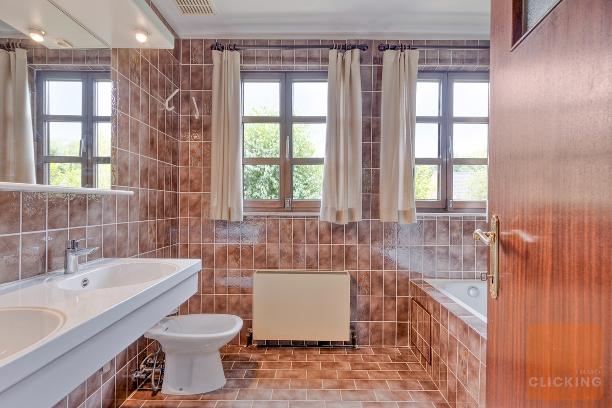 La maison dispose de 5 chambres, 2 salles de bains, ainsi qu’un espace supplémentaire pouvant servir de bureau ou de salle de loisirs – parfait pour une famille (recomposée) ou pour ceux qui souhaitent disposer de plus d’espace. Un autre atout : le double garage et les trois caves. Le grand jardin a été soigneusement aménagé et entretenu, avec une végétation mature offrant une intimité totale. La grande terrasse conviviale permet de profiter de la vie en plein air en toute saison.