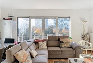 Tof appartement met 3 slaapkamers en ruim terras gelegen in een rustige laan. Hier woon je vlakbij het Scheutbospark, de tennisclub, Olympisch zwembad en het Edmond Machtens Stadion. Van op het riante terras met open zicht kunnen voetballiefhebbers de match in de verte mee volgen. Het ruime appartement met een totale bew.opp.van 113m2 ligt op de vijfde verdieping. Aan royaal binnenstromend licht dus geen gebrek. Via de inkomhal met vestiaire en apart toilet bereik je de light en airy leefruimte met open keuken, samen 36m2, een praktische berging en de 2 terrassen, beiden 17,7m2 waar het leuk vertoeven is na een drukke werkdag. Via de nachthal ga je naar de master bedroom met privé badkamer en aan de andere zijde van het appartement zijn er nog 2 slaapkamers en een douchekamer. Op – 1 heb je nog een kelder.