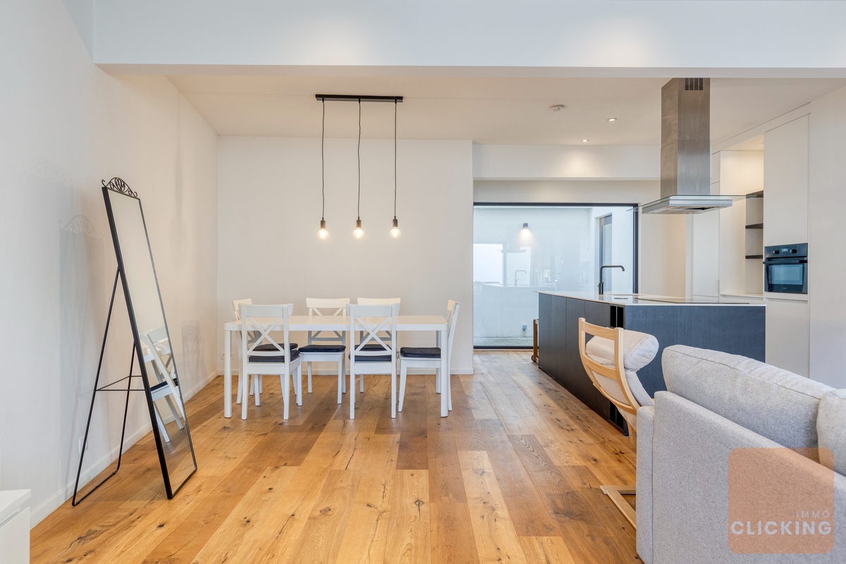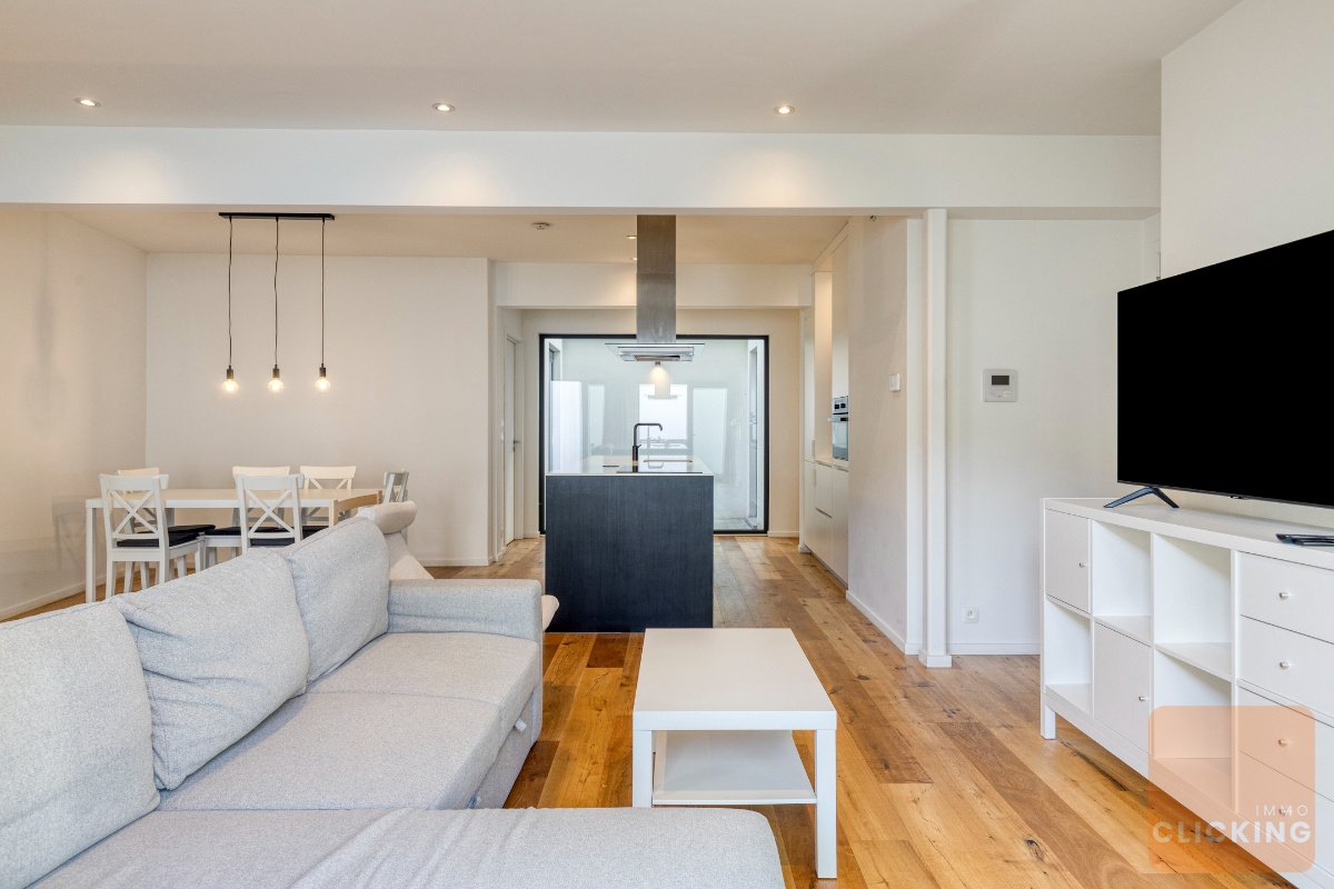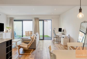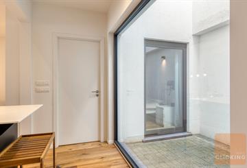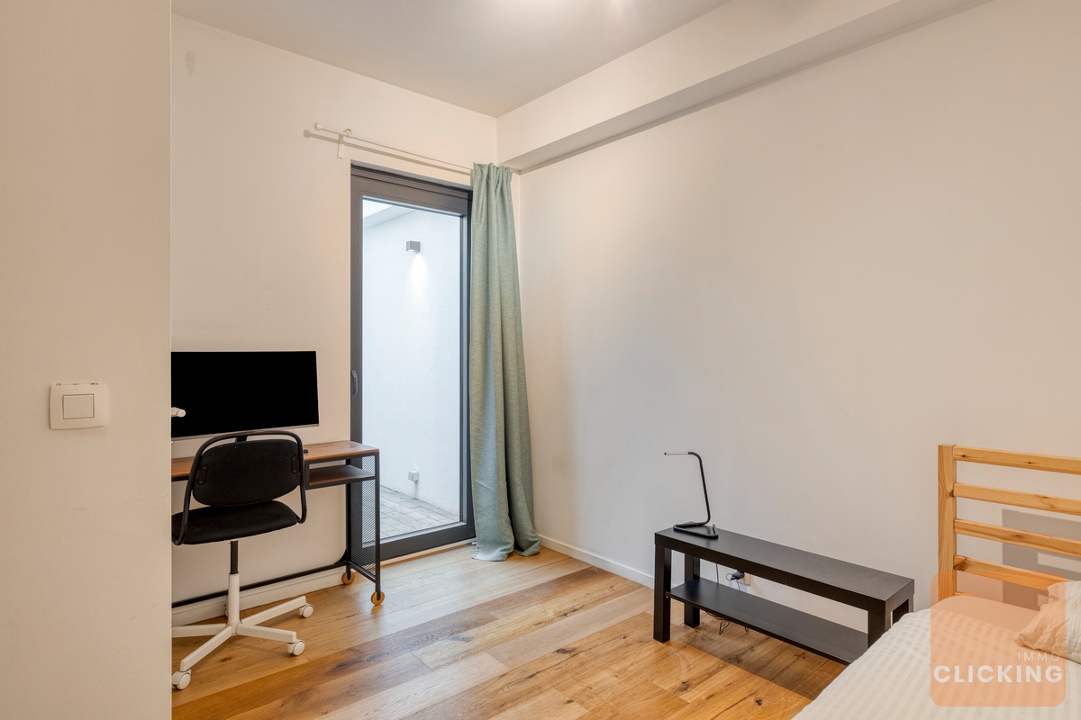 Ce magnifique appartement, achevé en 2019, allie un design contemporain à une atmosphère chaleureuse et raffinée. Discrètement situé et entièrement à l’abri des regards depuis la rue, il offre un sentiment exceptionnel de calme et d’intimité, particulièrement rare en milieu urbain. Le lumineux séjour s’intègre harmonieusement avec une élégante cuisine ouverte et dégage une élégance intemporelle. De larges baies vitrées créent une belle connexion avec l’extérieur et permettent à la lumière naturelle d’inonder généreusement l’espace. Un atout majeur de ce bien est son jardin orienté plein sud (±30 m²), accessible directement depuis le séjour et idéal pour profiter de moments de détente en toute sérénité. L’appartement dispose également d’un charmant patio intérieur (±9 m²), accessible depuis le séjour ainsi que depuis les deux chambres. Cette combinaison unique d’espaces extérieurs offre une expérience de vie exceptionnelle et procure une agréable sensation d’ouverture et de luminosité dans tout l’appartement. La disposition intelligemment pensée assure un équilibre parfait entre esthétique et fonctionnalité, avec des chambres confortables et une salle de bains aménagée avec goût. Des matériaux de qualité, des parquets élégants et un chauffage par le sol contribuent à un confort de vie optimal. Situé dans une petite copropriété, au cœur d’un quartier recherché et verdoyant, à proximité du Parc de Laeken et du plateau du Heysel. Cet emplacement garantit une combinaison idéale entre tranquillité, accessibilité et qualité de vie, avec d’excellentes connexions et toutes les commodités à proximité immédiate. Disponible à partir de septembre 2026.