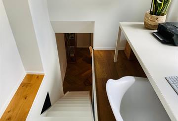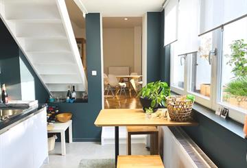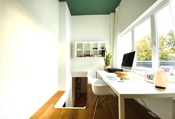 Stijlvol en volledig gemeubeld design-duplexappartement van ca. 95 m² in Schaarbeek, op wandel- en fietsafstand van Josaphatpark, Jubelpark, Europese wijk, NAVO en centrum Brussel, met tram en openbaar vervoer vlakbij. Het appartement ligt achter een grote inkompoort rond een afgesloten gemeenschappelijke binnentuin en bevindt zich op de eerste en tweede verdieping van een charmant herenhuis met slechts vier mede-eigenaars.