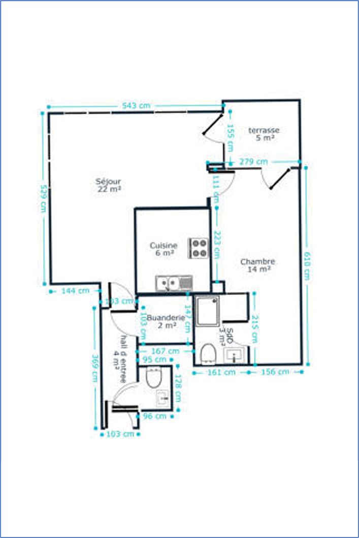 Het bestaat uit een zeer lichte woonkamer van 22 m² met 3 raam-deuren evenals een volledig uitgeruste keuken met een groot werkblad. Alle toestellen zijn van het merk Miele. Er is 1 slaapkamer van 14 m² met een dressing en een badkamer met douche en toilet. De woonkamer en de slaapkamer komen beiden uit op een aangenaam terras van 5 m² west-gericht om volop te genieten van het einde van de dag. De woning heeft een aparte toilet en een wasruimte evenals een aparte inkomhal. Half-massief parket in alle kamers en tegels in de keuken en de badkamer, driedubbele beglazing, dubbele stroomventilatie, geïnstalleerde Proximus-vezel, thermische en akoestische isolatie. Meer info en attesten zie website: immoclicking.be.